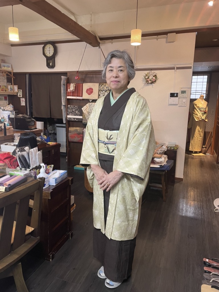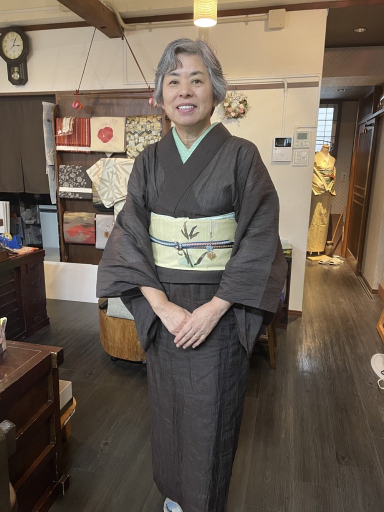 今日はちえさんがいらしてくださいました!茶色の小千谷縮は