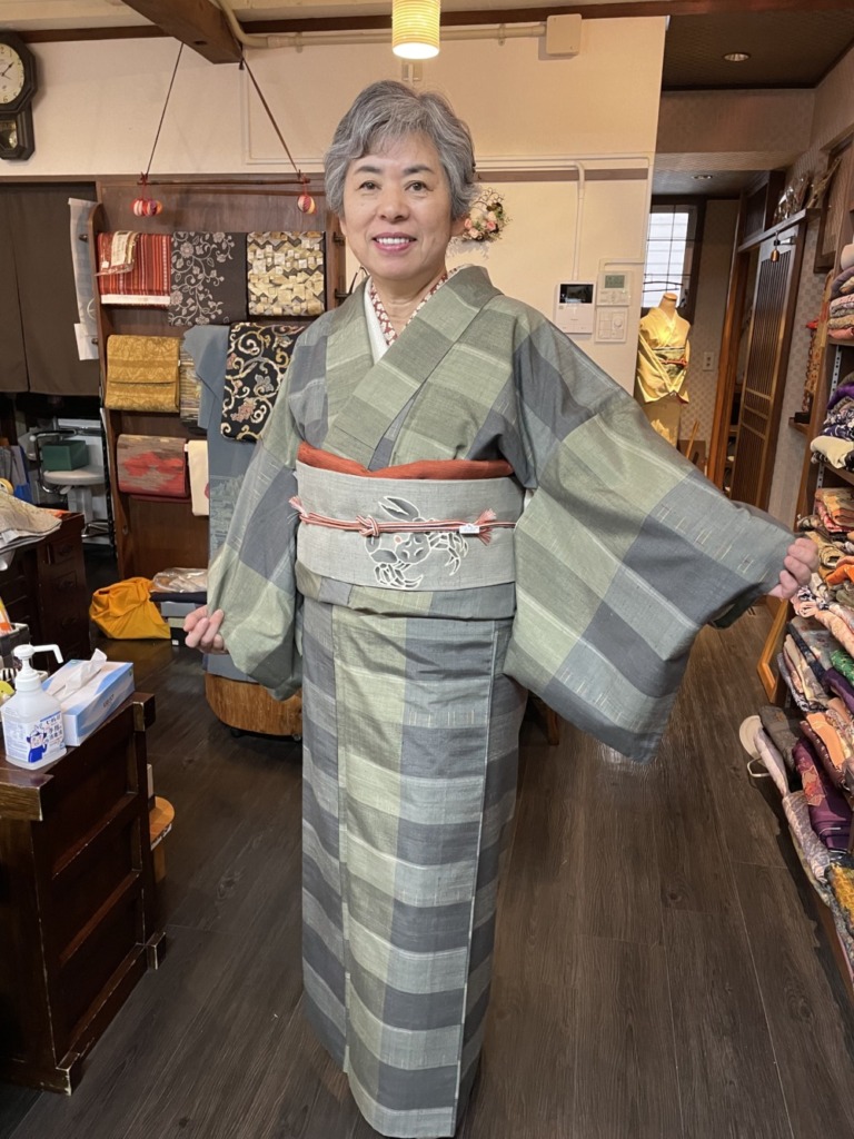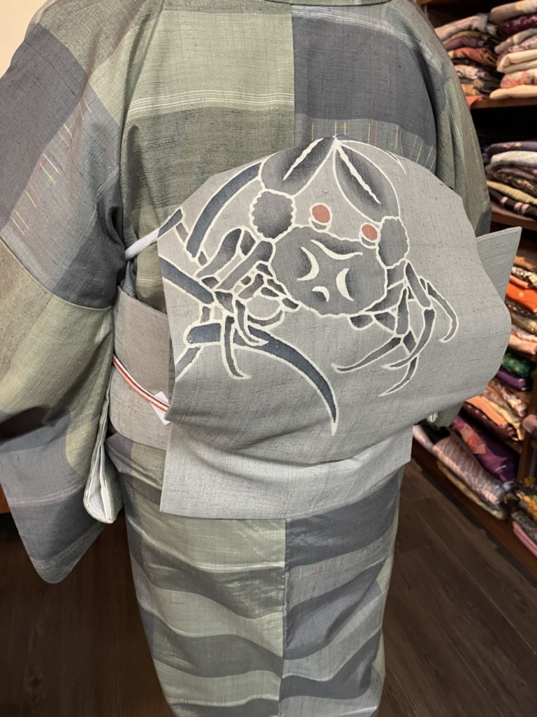 そして帯は生紬のなんと可愛い🦀カニさん