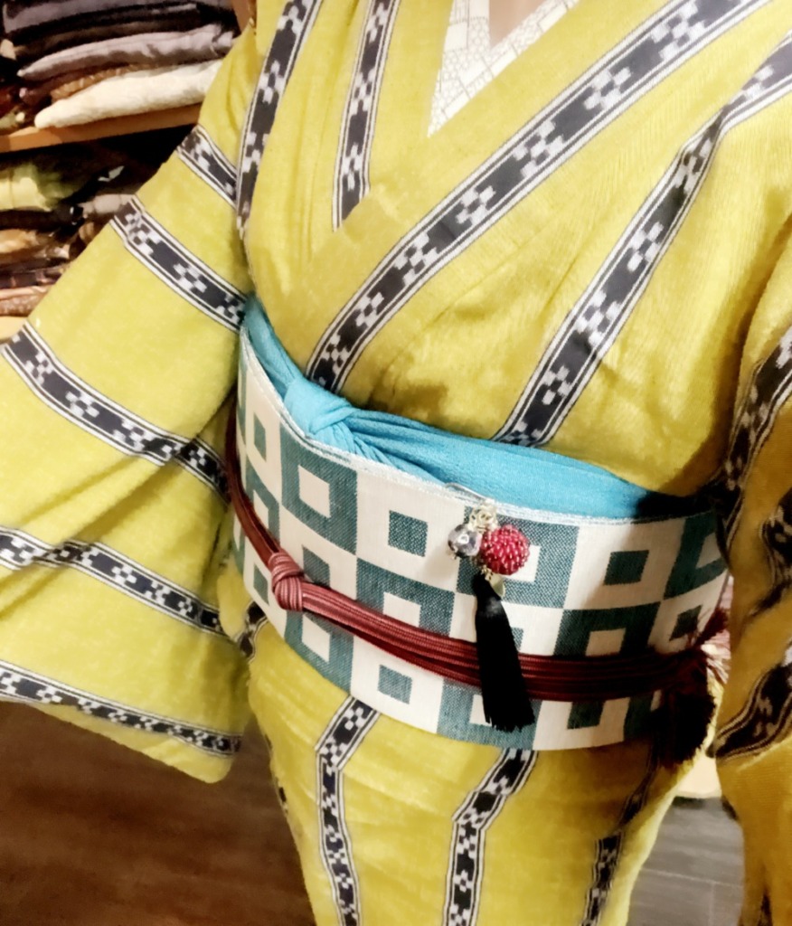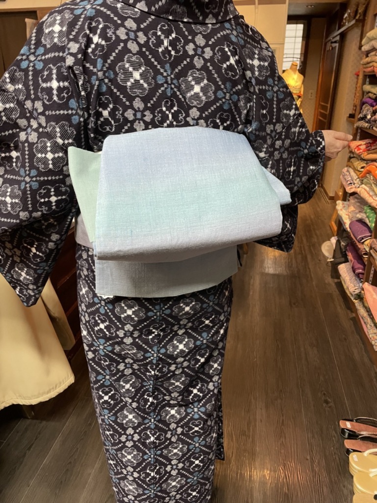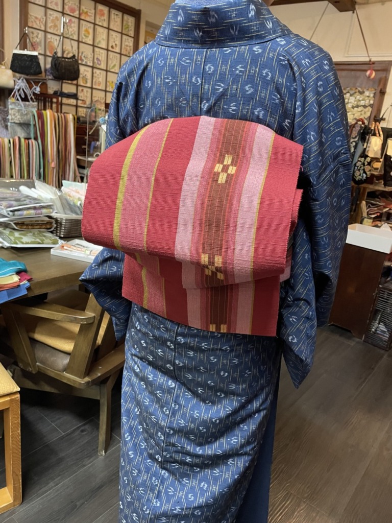 合わせた帯はミンサー織り名古屋!