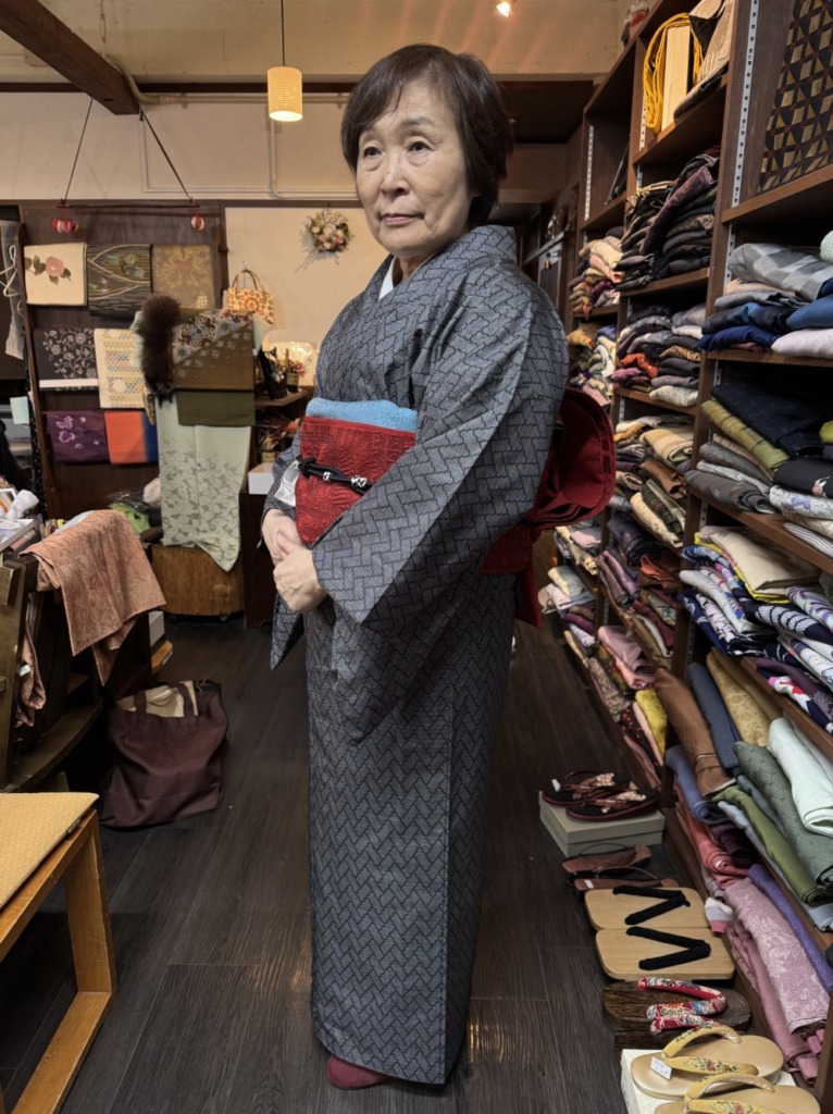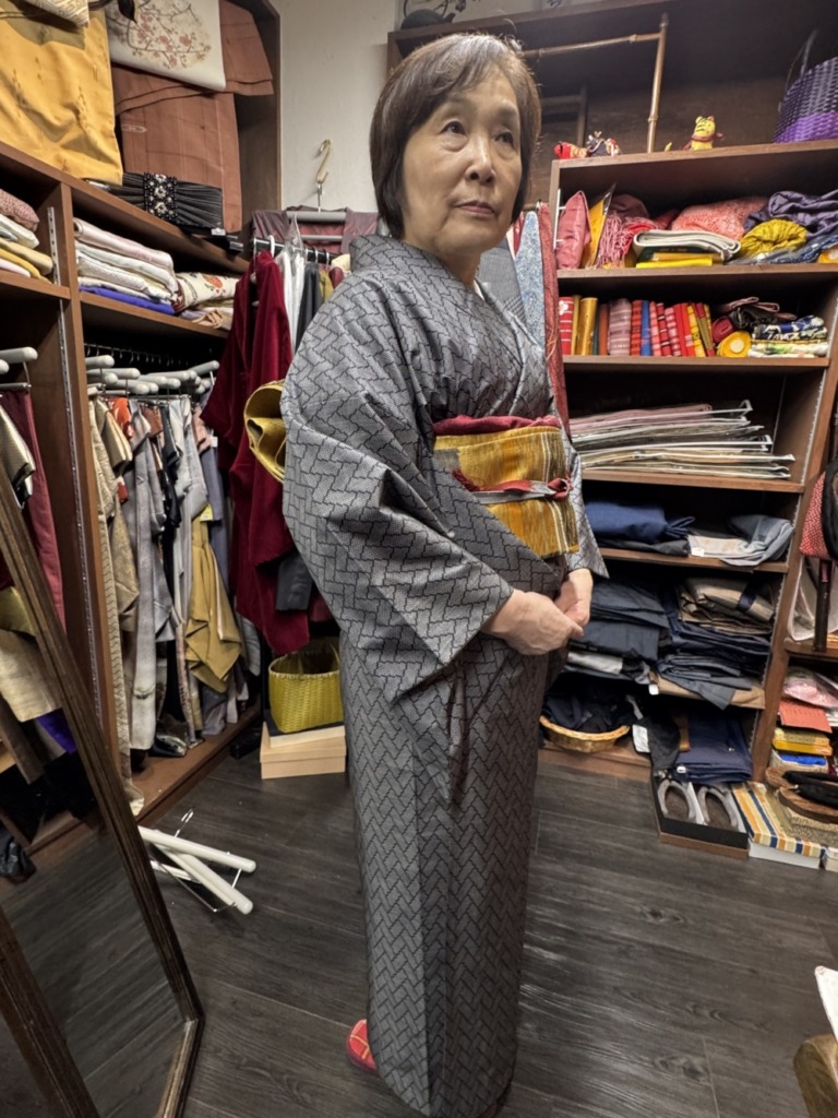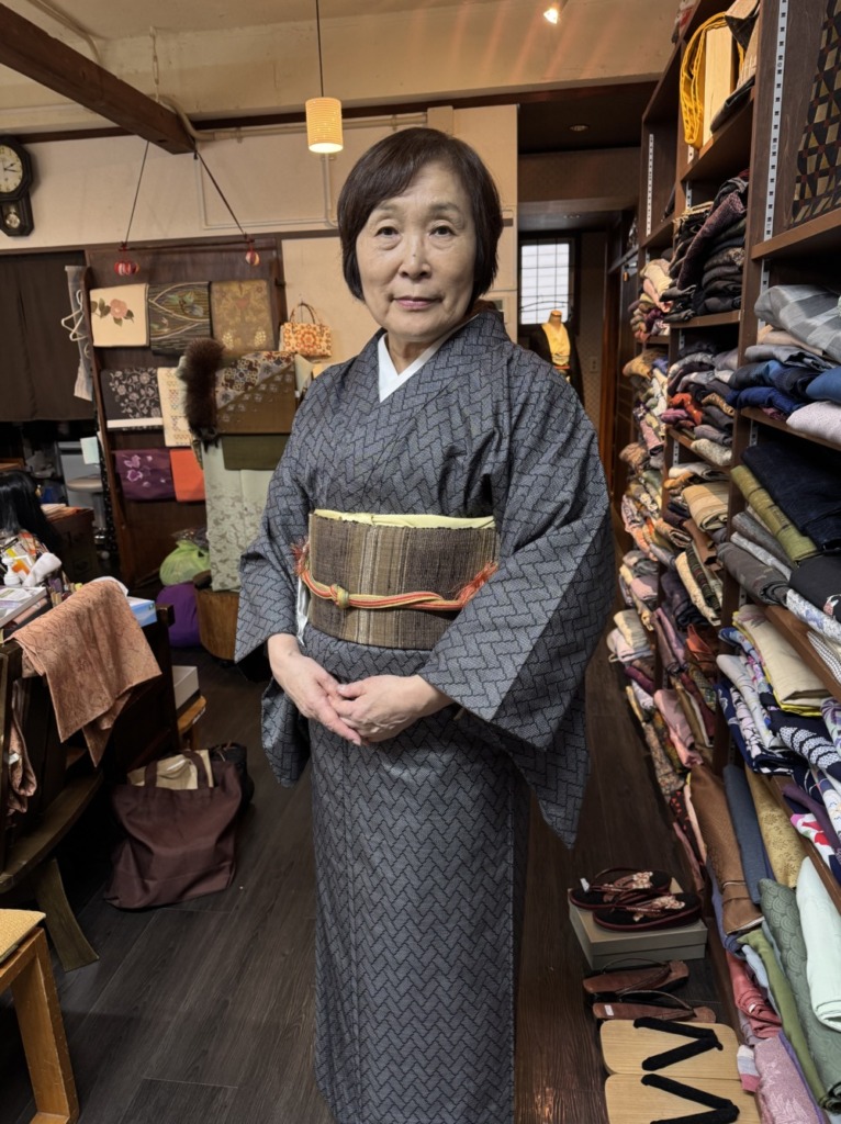ゼンマイ帯と井桁は渡文の手織りです!オシャレに着こなせそう❣️