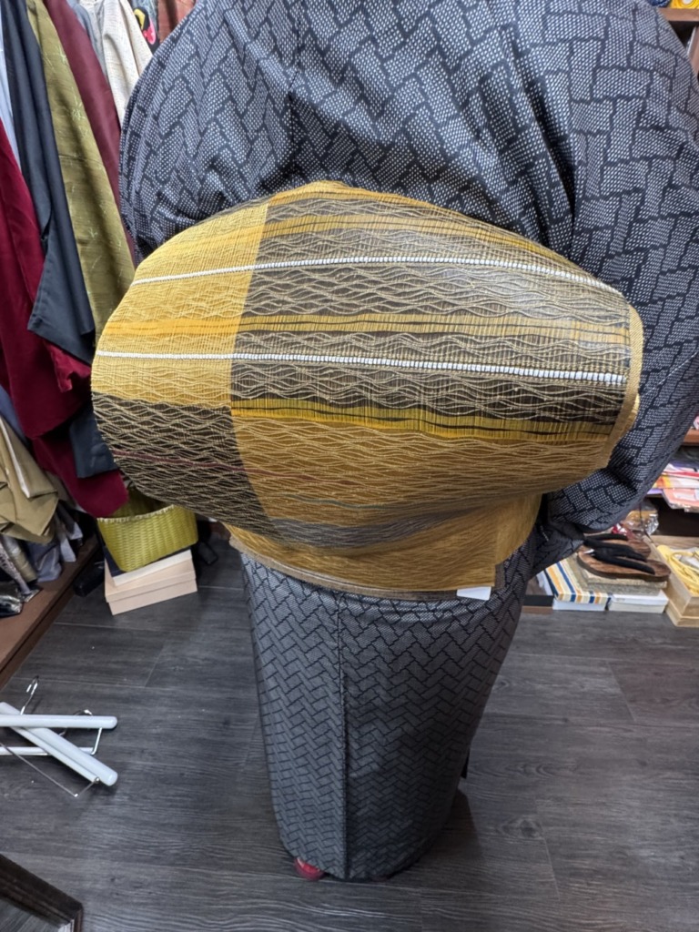 明るめの色あいで!辛子色きれいですね!合わせやすい串織!軽いですね!今日の大島にもピッタリ!🤟😀
