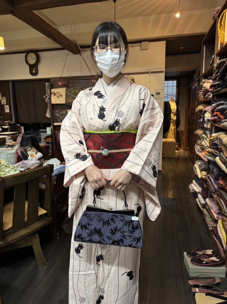 素敵でしたね!合わせた帯は半幅帯、隠れ猫柄なんですよ〜🤟😊