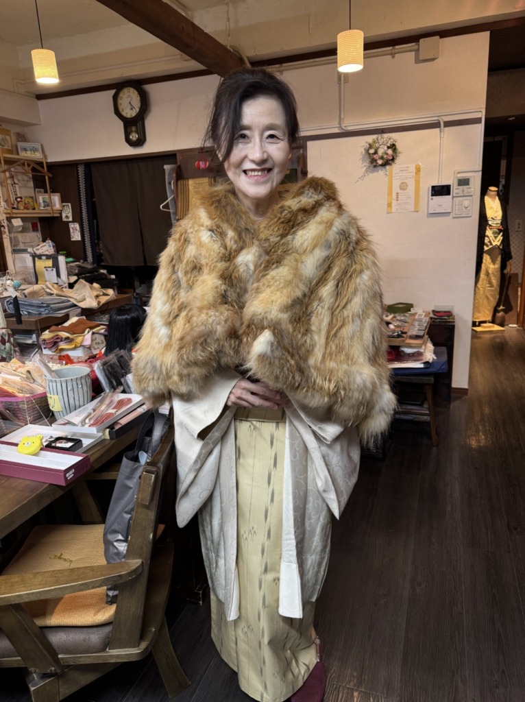 こちらの道中着、色柄気に入ってくださいました。カシミアのショールもお似合いでしたよ🩷✨✨