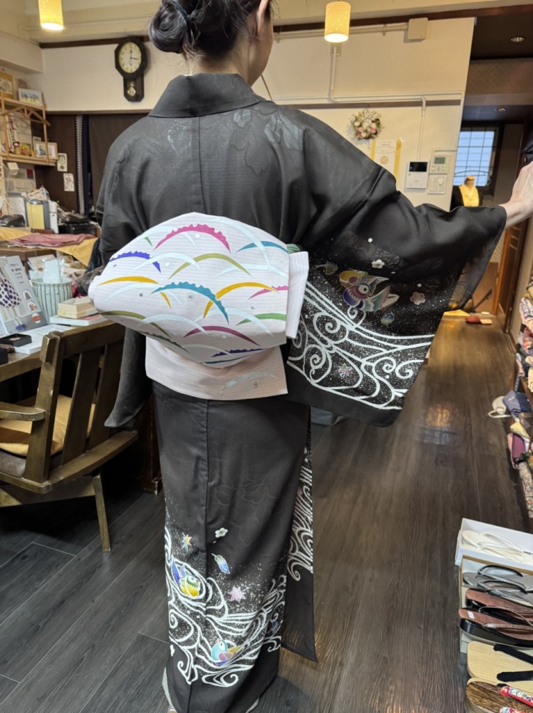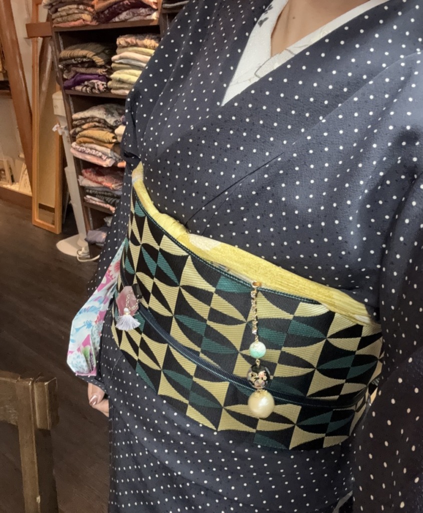 またこちらの帯と小物も、ちょっとひねったコーデでGOOD❣️オシャレになりましたよ!