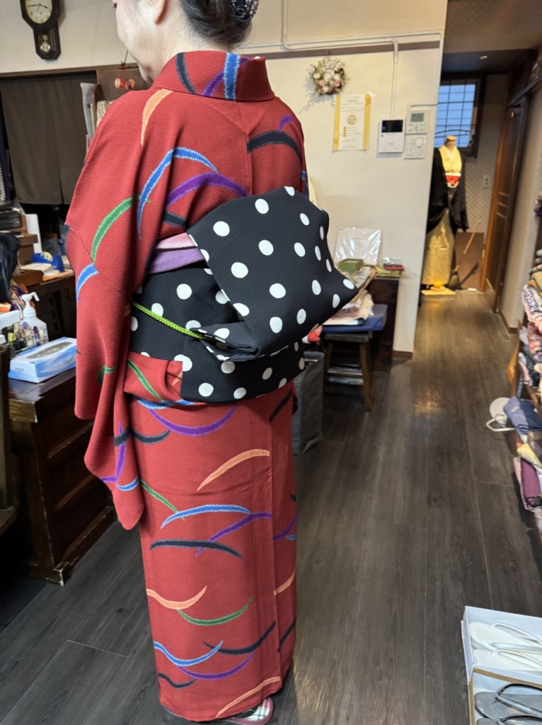 水玉模様の帯は何にでも合いますね!