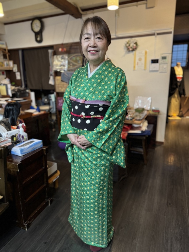 絞りの着物、かわいいです!緑色がとっても綺麗でお似合いですね😍