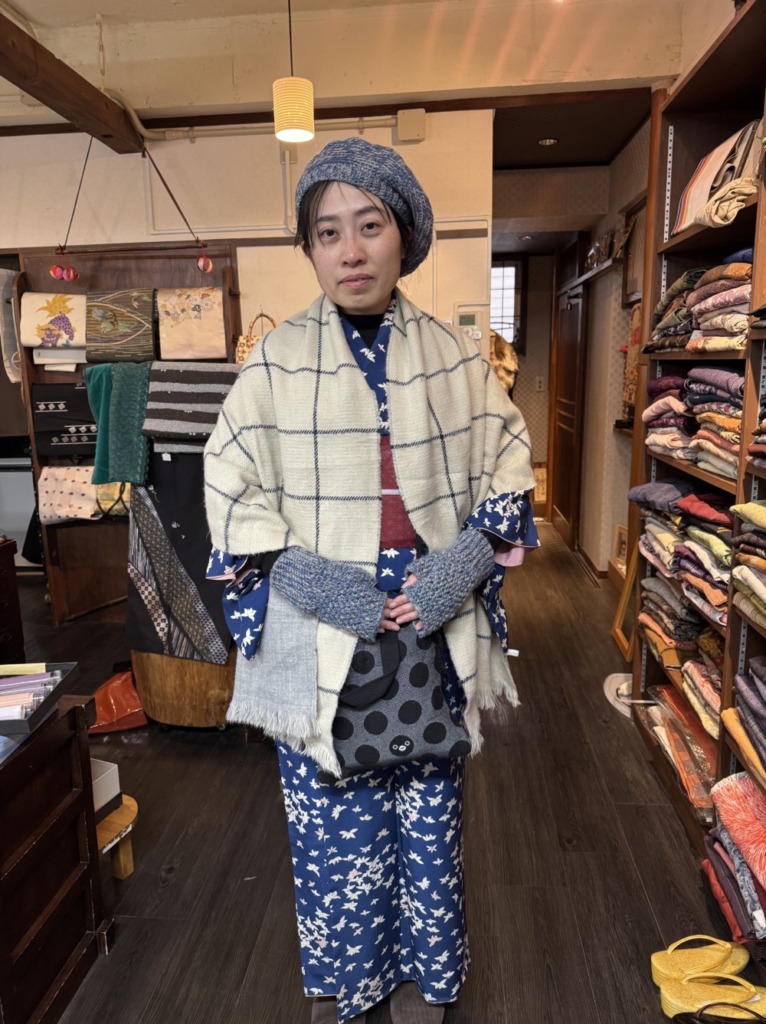 綺麗な色の江戸小紋、和裁を習っていてご自身で縫い上げたそうです!👏👏👏