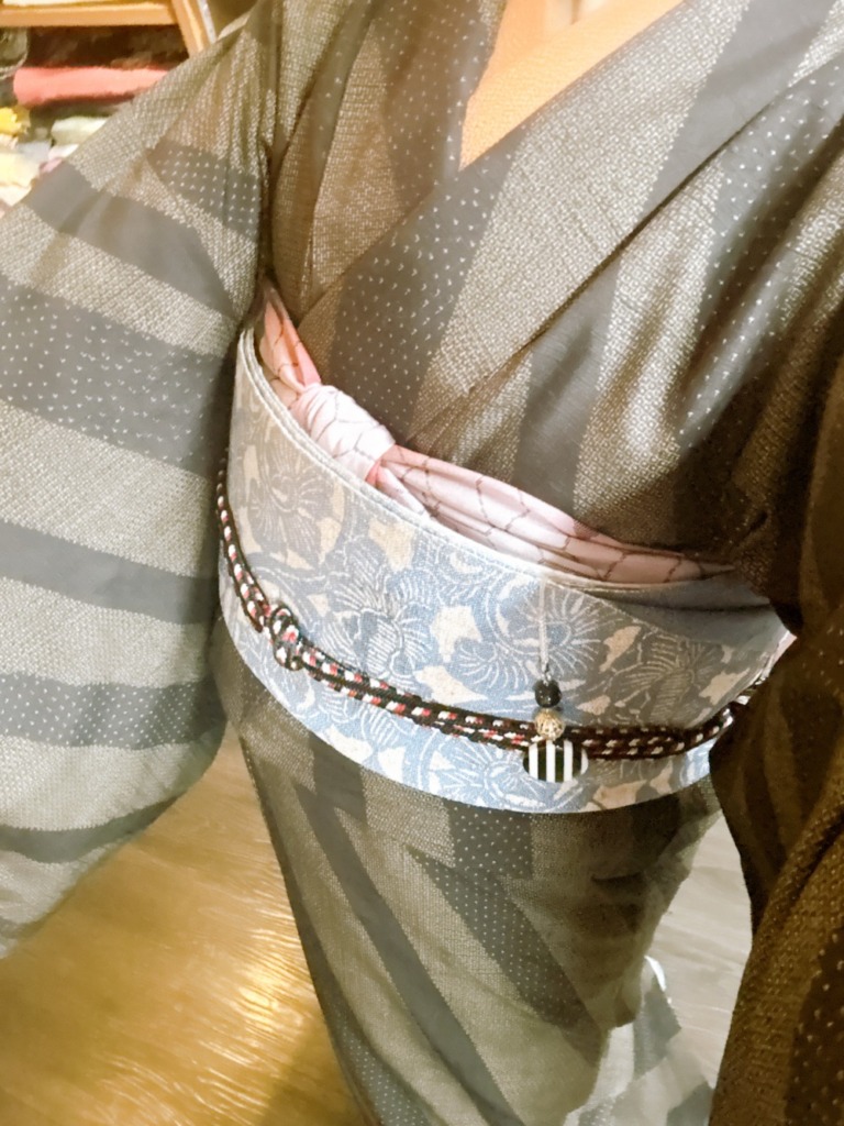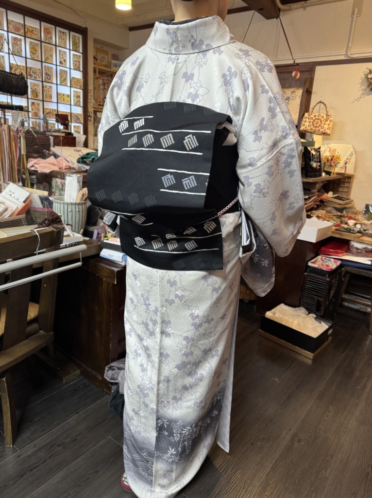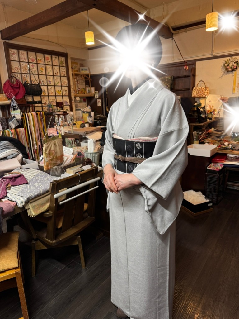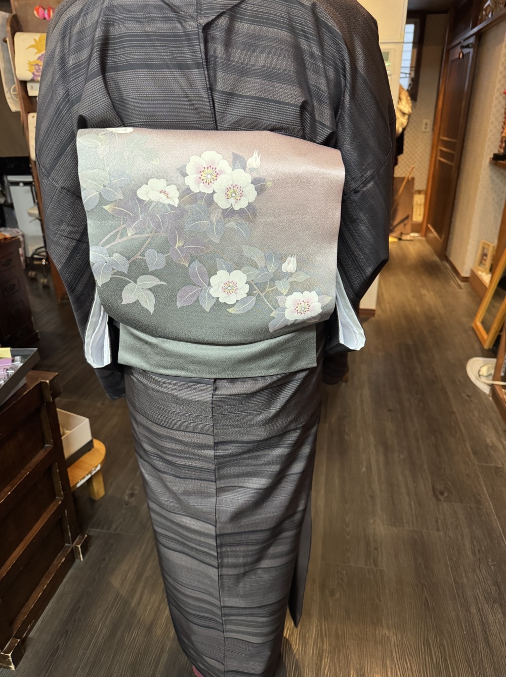 グレーの無地と黒の源氏香帯とってもお似合いでした♪