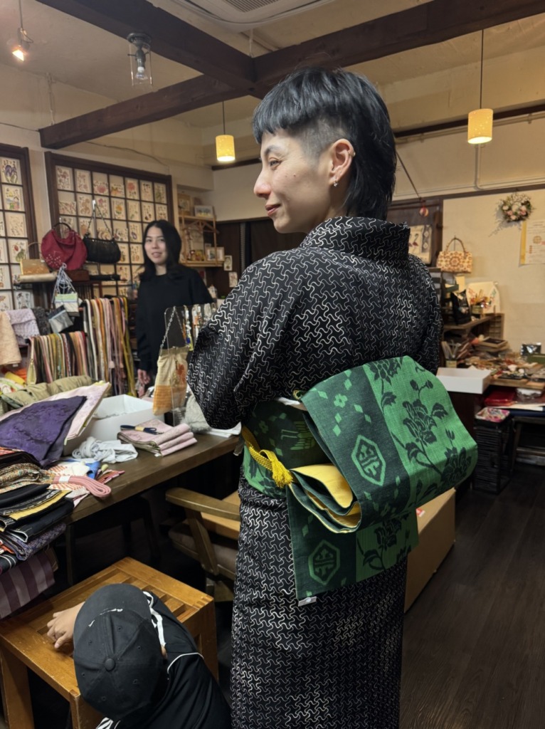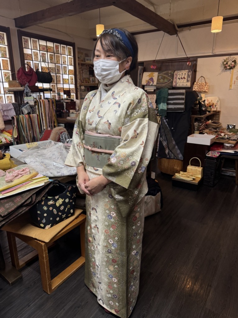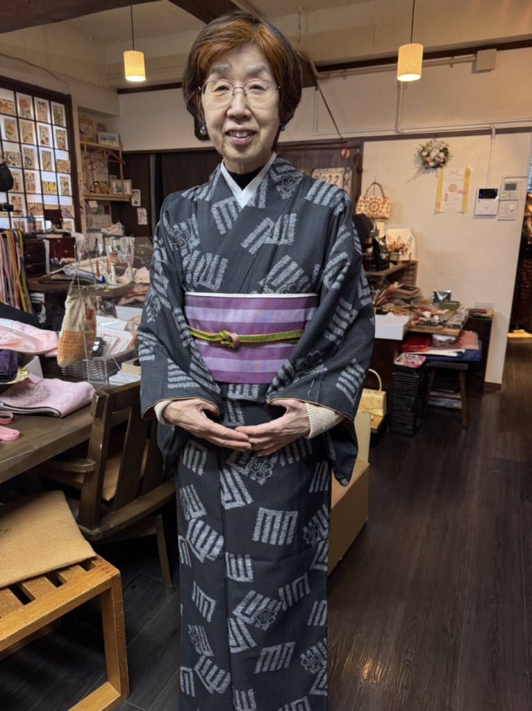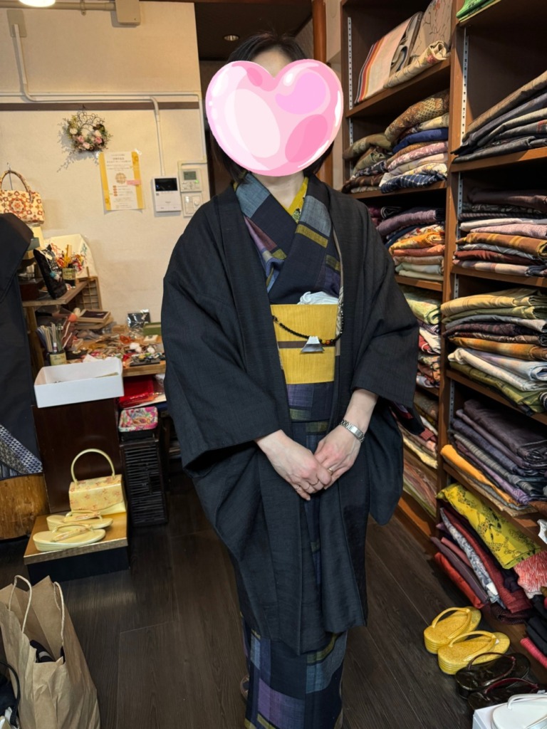 着物は最近はあまり着てないけど、こちらの洗える着物をお店で羽織ってくれました!