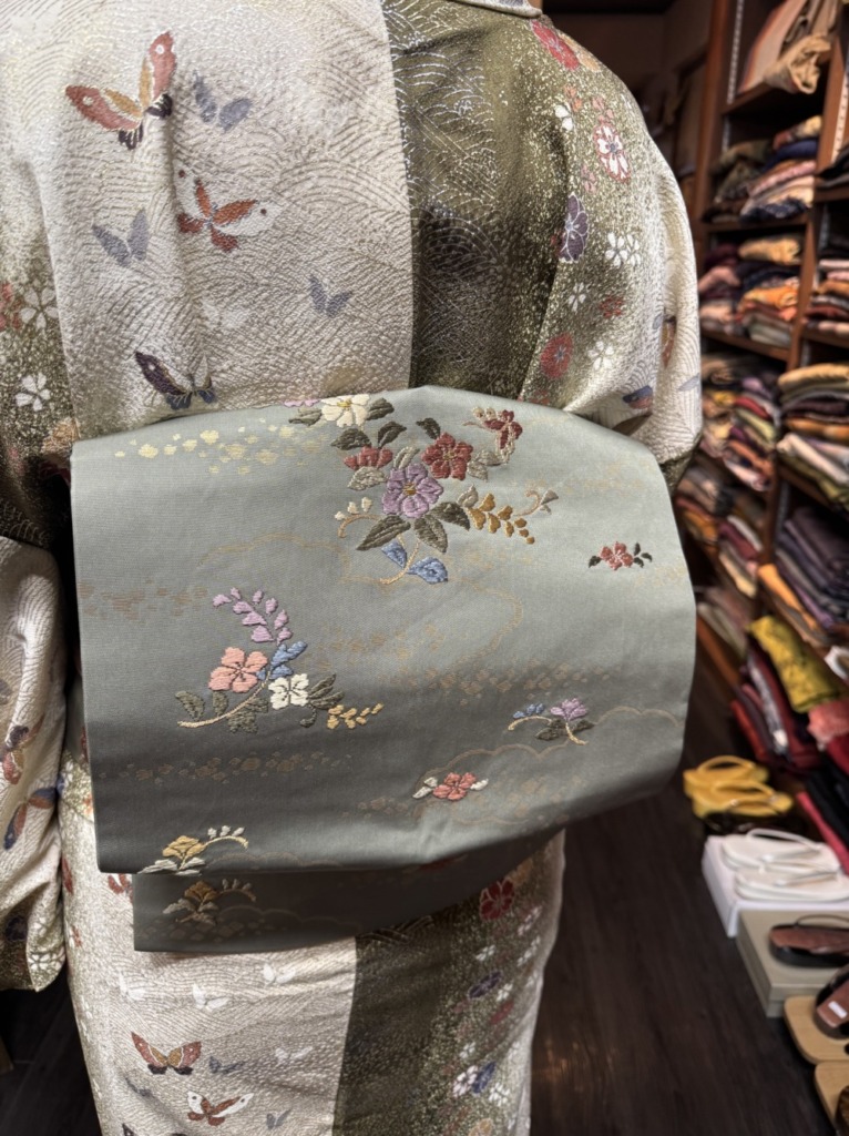 入卒式やちょっとお出かけにも着られる小紋、合わせたお昼は名古屋帯です!