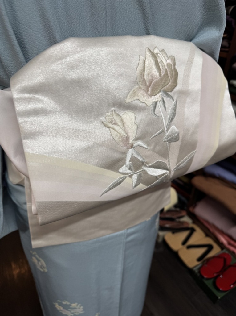 帯選び、、こちらの刺繍の帯🌹