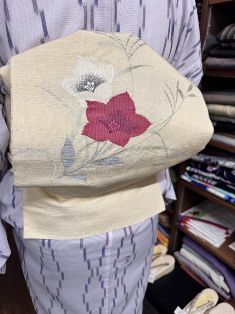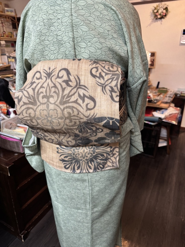 また、こちらの名古屋帯も織り柄が凝っていて、シンプルかつ究極的オシャレ!