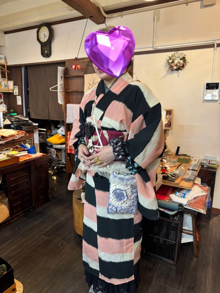 初めていらしてくれました!かわいいコーデ🩷自由に個性的に着物を楽しんでいらして