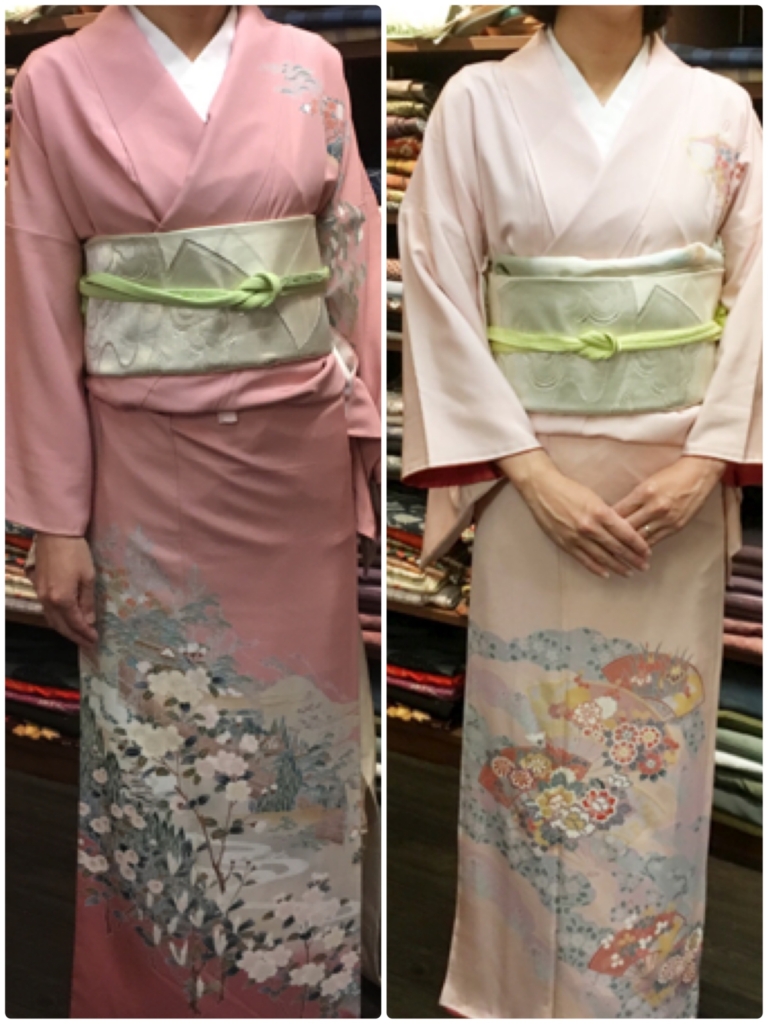 ピンクもいいな。。と2種類の着物をお試しに!